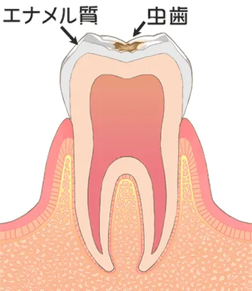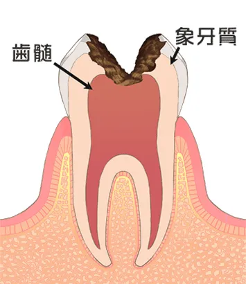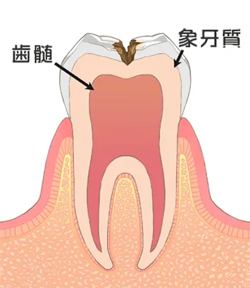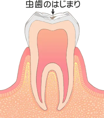 虫歯は、進行するにつれて歯の奥の方まで侵食していき、最終的には歯の根まで菌が侵食してしまいます。主に5つの段階があり、それぞれ治療法も異なります。虫歯が進行すると、治療に時間と費用がかかりますので、早めの治療をおすすめします。